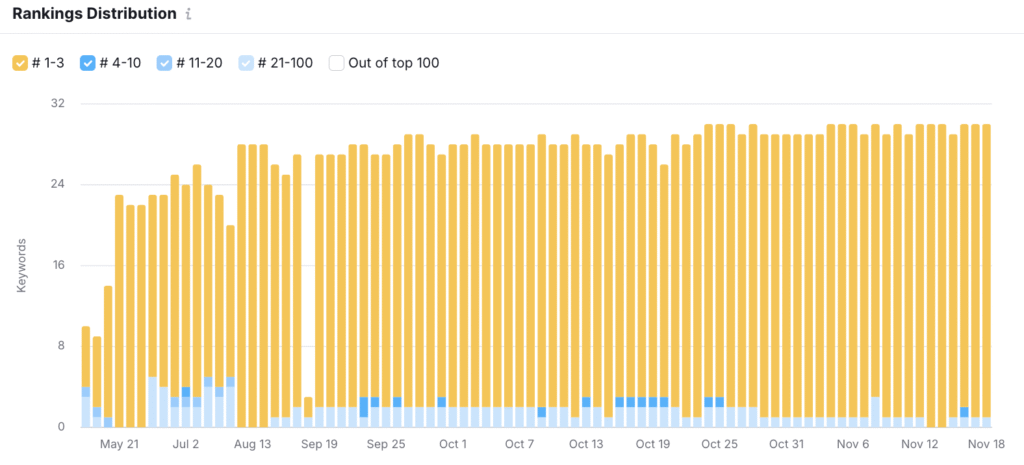 Top 3 Positions: 29 keywords (including 23 new keywords) are now firmly ranked in the Top 3 positions.